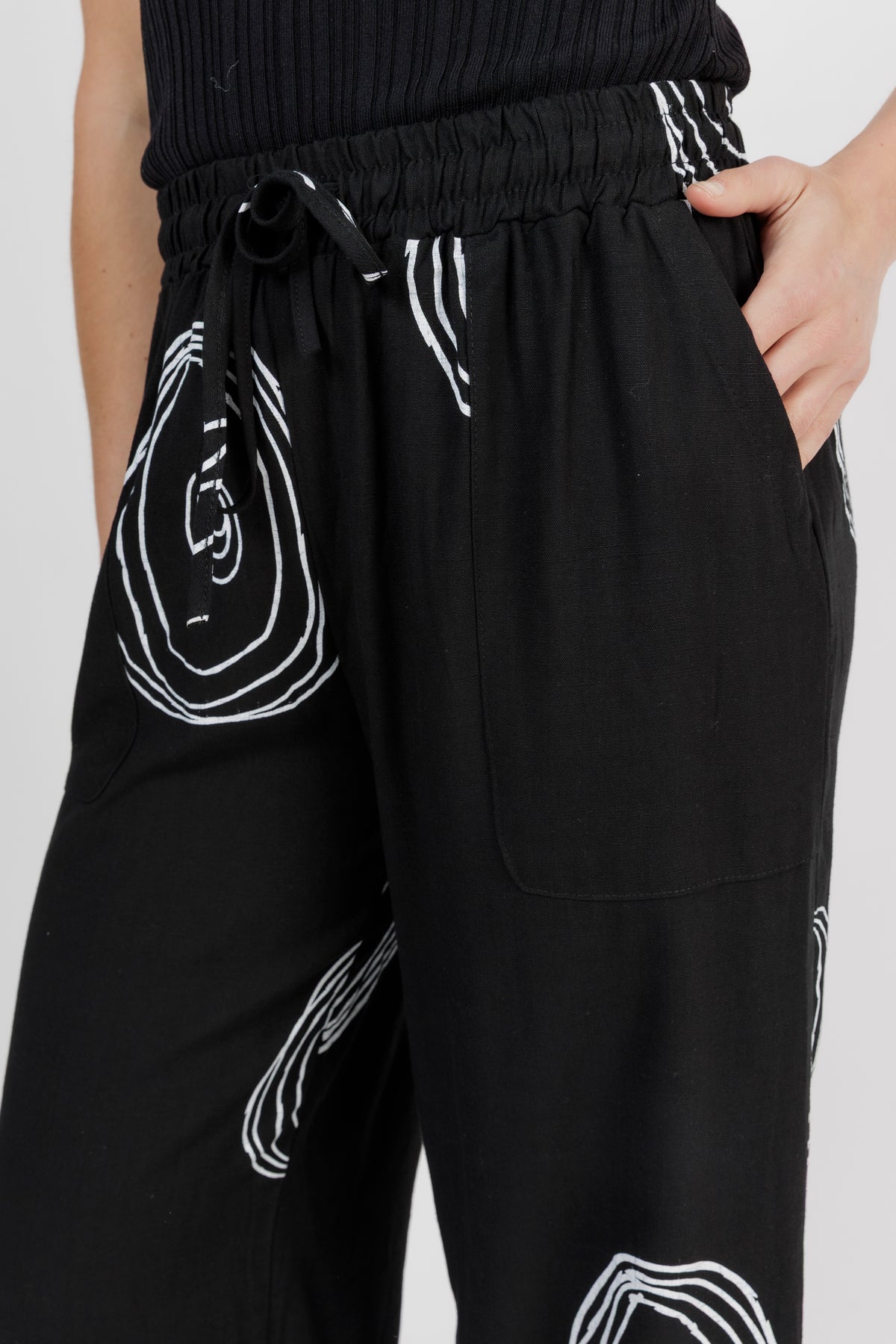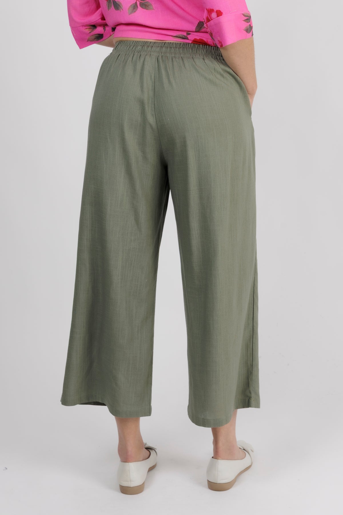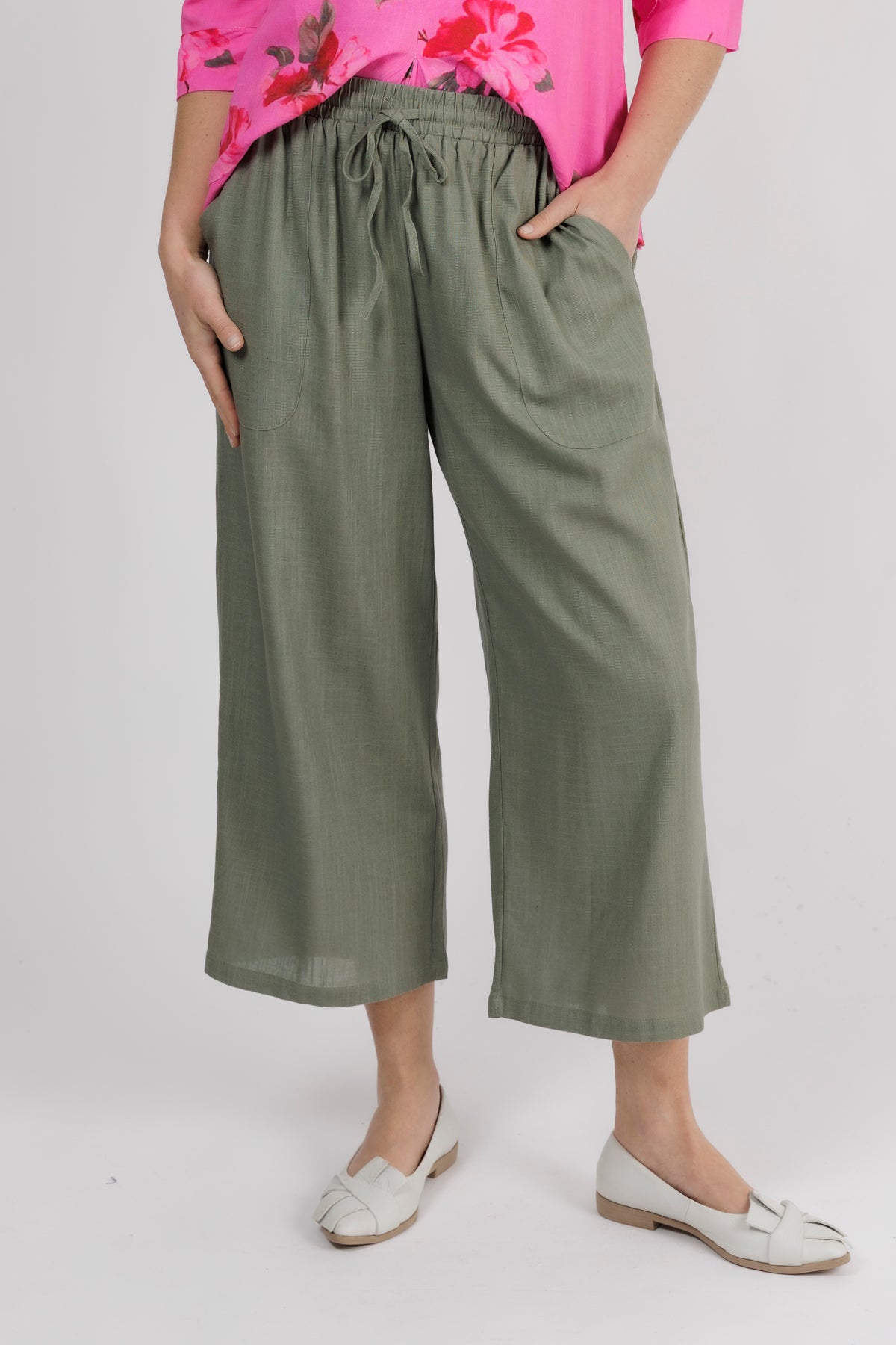 - The elasticated waistband and linen blend fabric keep this pant comfortable and light to wear