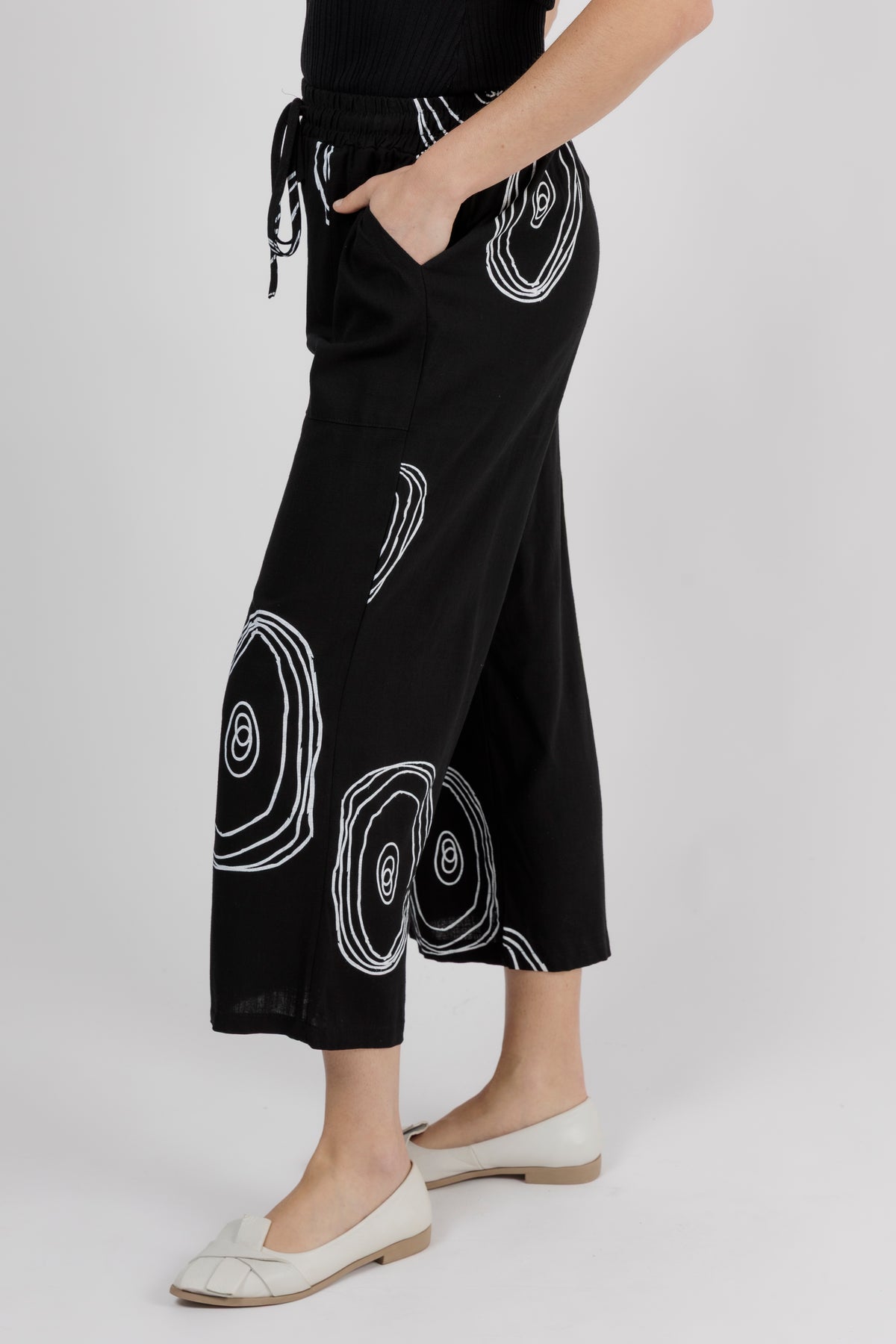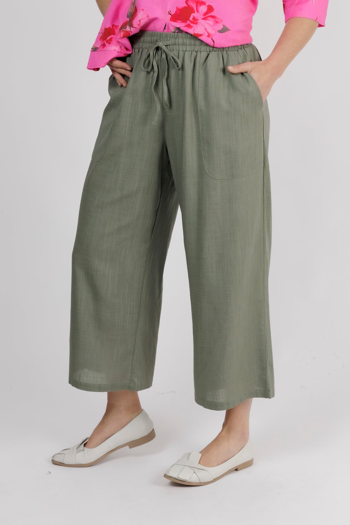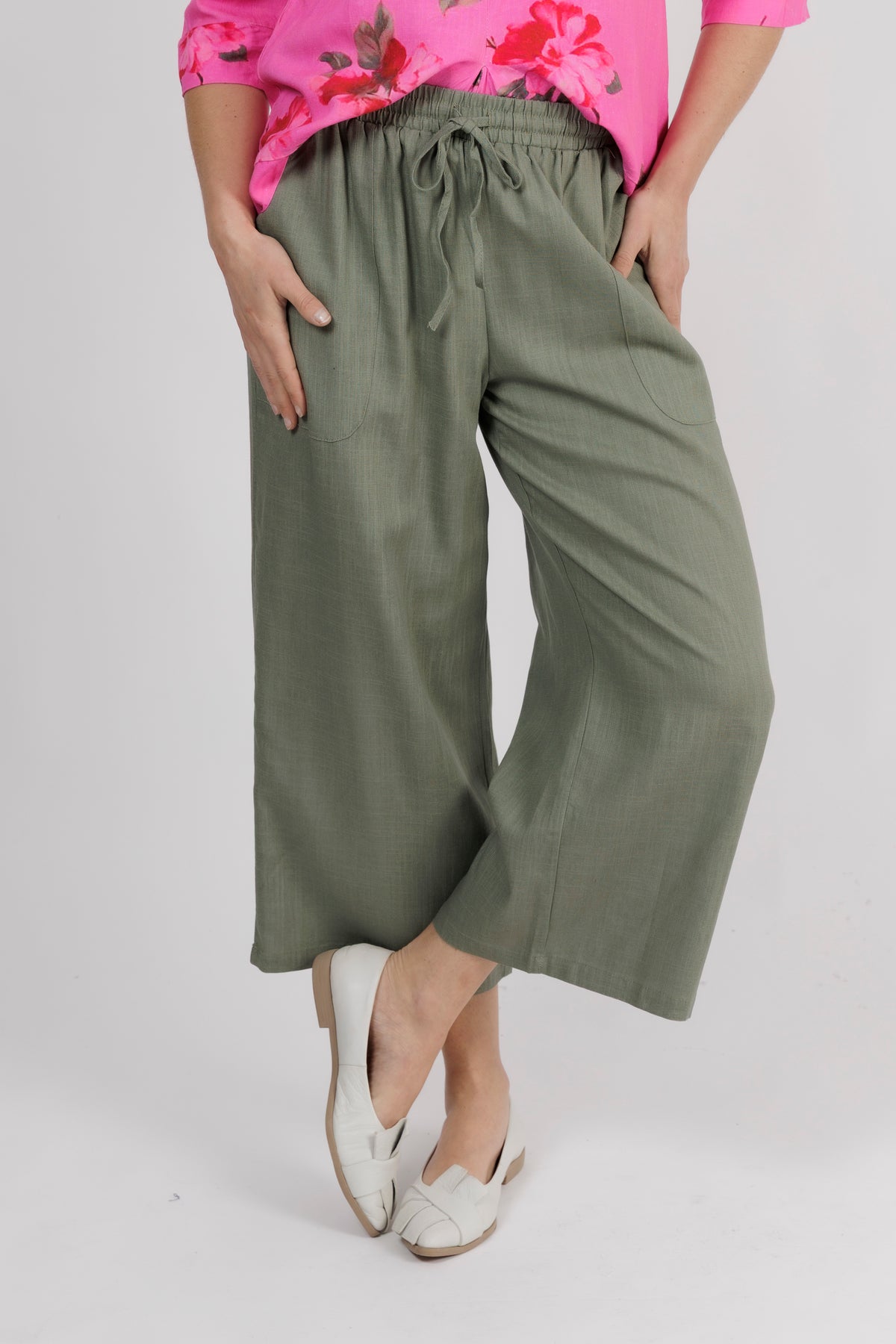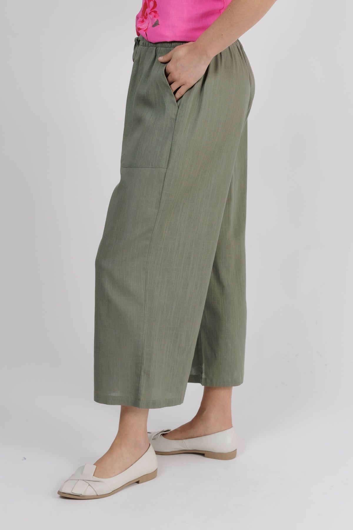 - The elasticated waistband and linen blend fabric keep this pant comfortable and light to wear