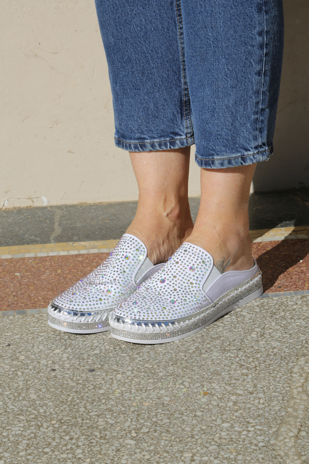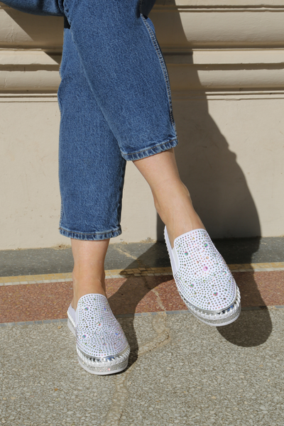 - White sole decorated with silver diamantés and thick rope-like stitching