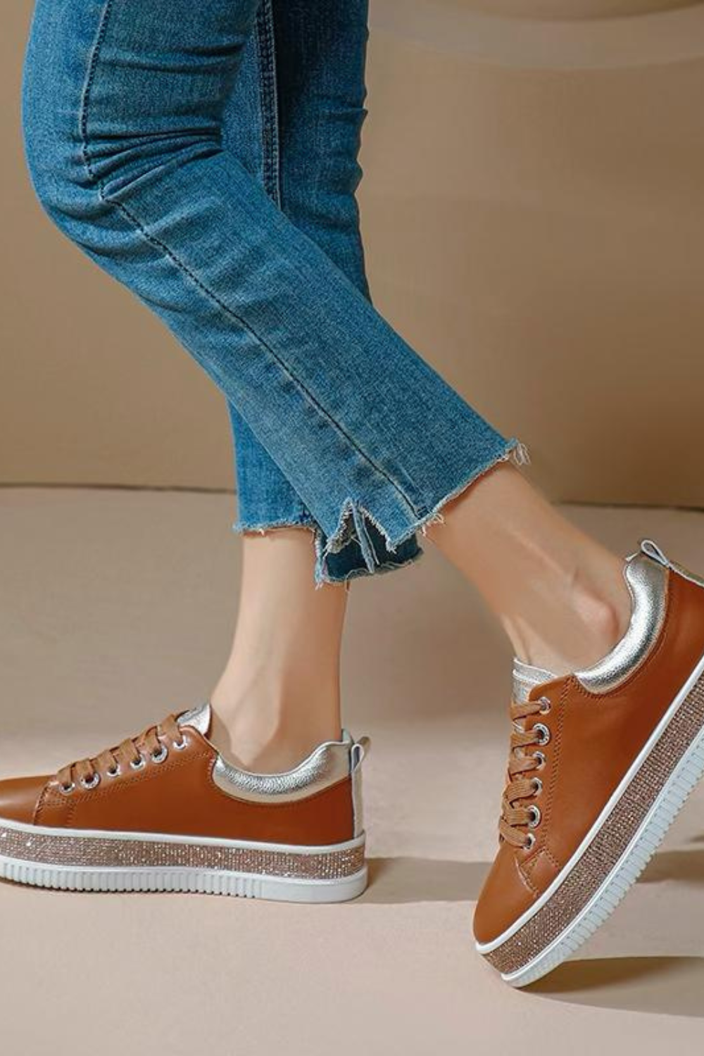 Shine in these metallic sneakers adorned with a sparkling heart rhinestone detail. A perfect mix of comfort and glamour for casual yet stylish looks.