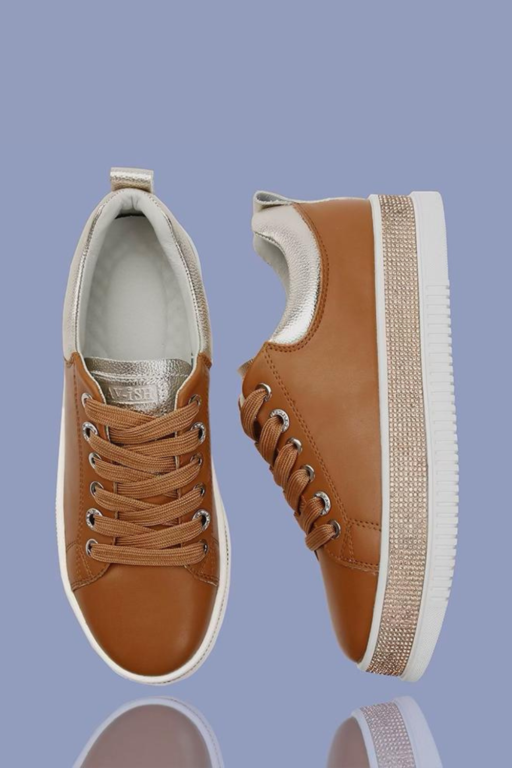 - These chick lace-up sneakers feature a stunning embellished heart detail, adding a touch of sparkle to your everyday look. Perfect for comfort and style