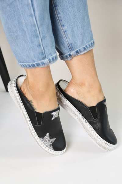 - Lightweight and effortlessly stylish, these slip-on mules feature a sparkling bling cross strap design. Perfect for all-day wear with elasticated gusset for flexible, and comfortable fit.