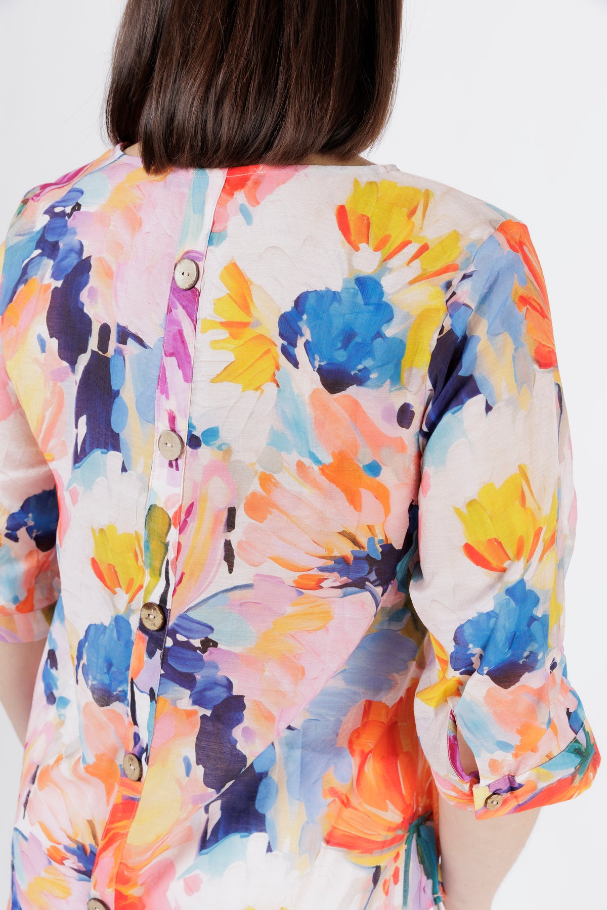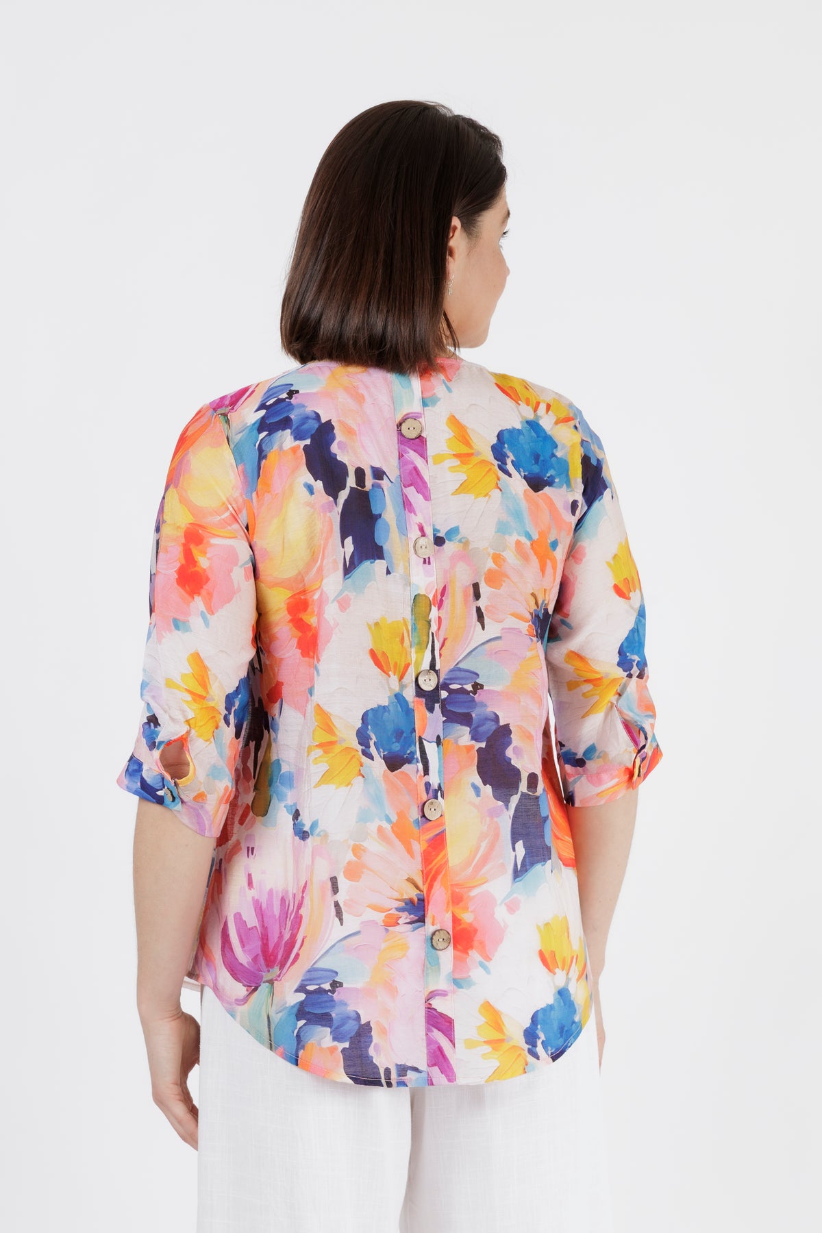 • 3/4 sleeves with roll-tab button detail