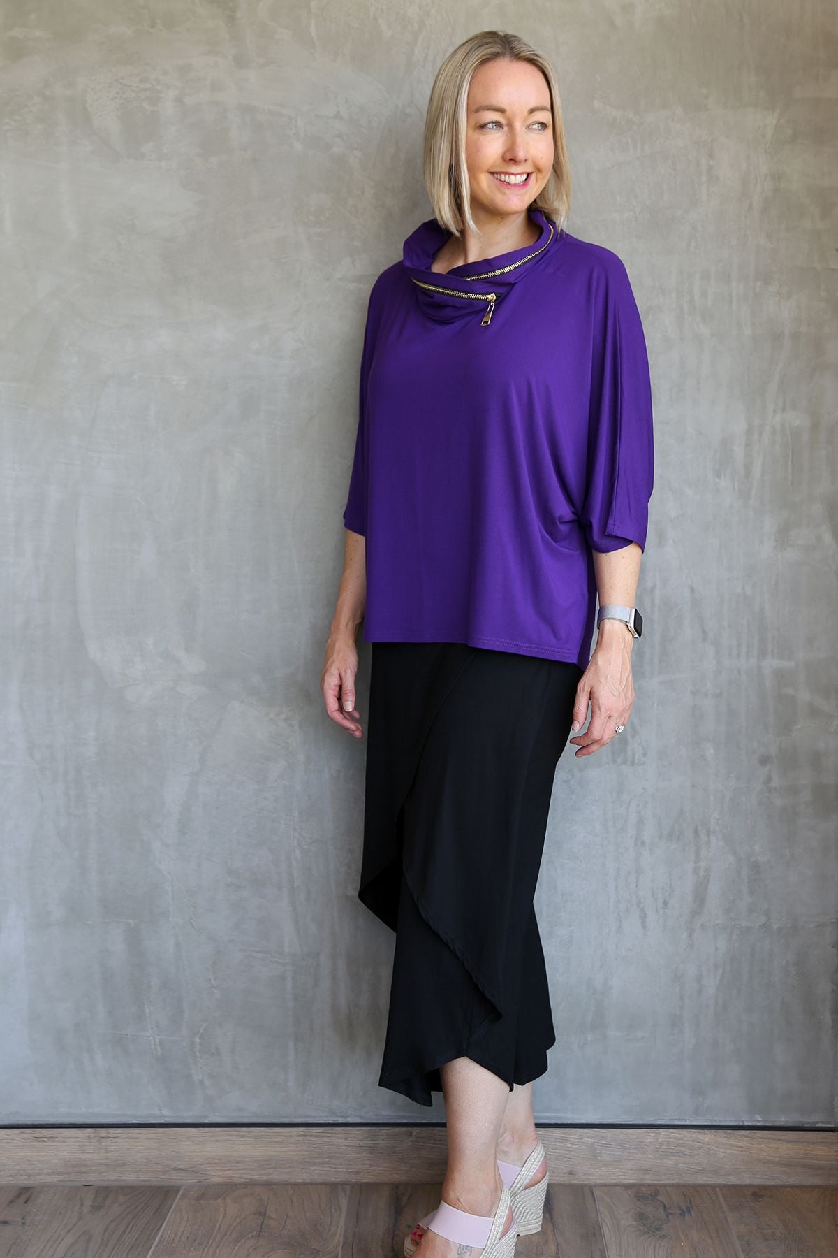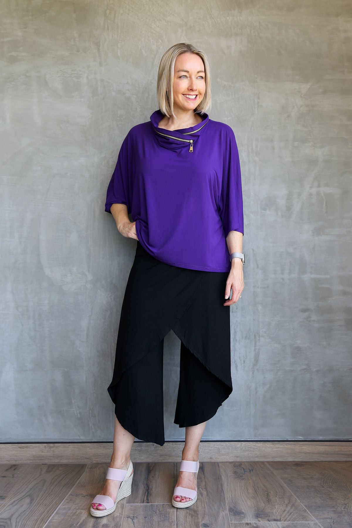 LILIAN Eggplant Bamboo Zip Detail Top