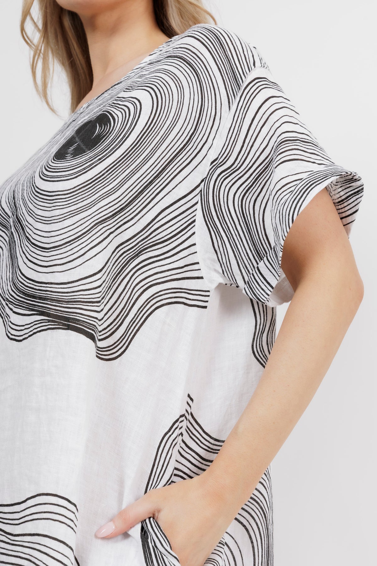 - COLOUR: Lovely abstract line print on white base
