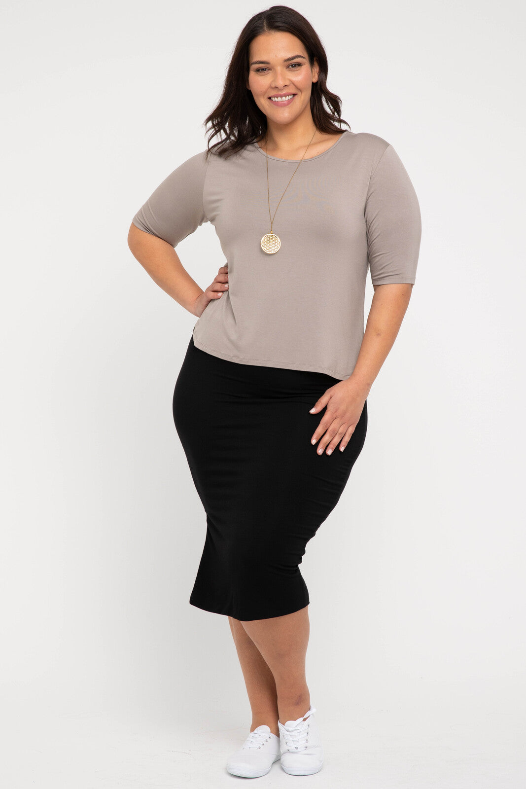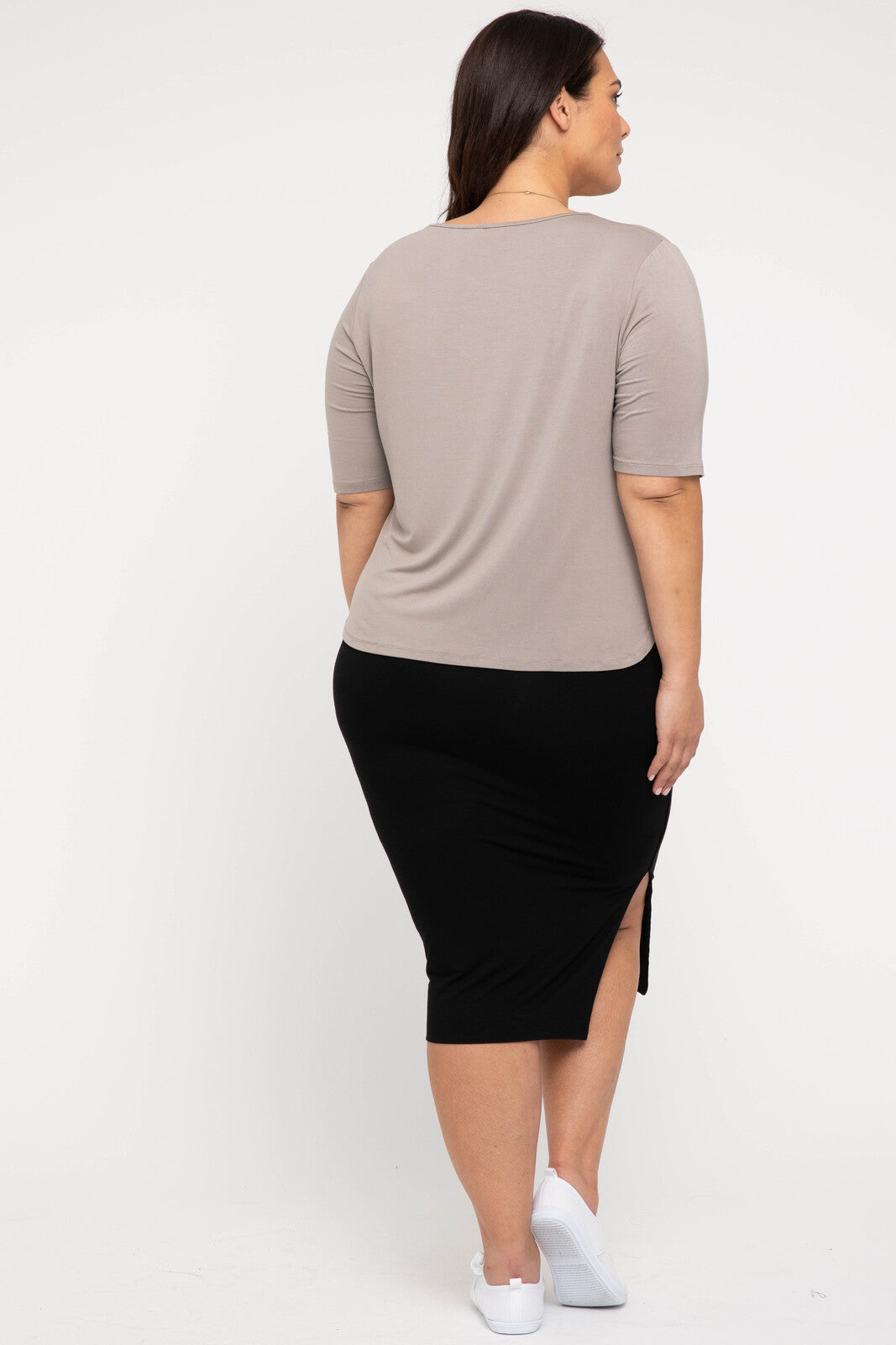 The midi length Nina Skirt is a new favourite here at Bamboo Body! The styling possibilites for this skirt are endless. Perfectly suited to the work environment, evening events or dressed down with sneakers for day time wear. Either way, the Nina Skirt will be on constant rotation.